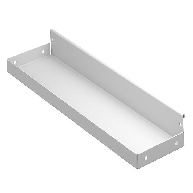 Полка выполнена из прочного металла и окрашена методом порошковой окраски в цвет основной конструкции, что обеспечивает устойчивость к царапинам и долговечность покрытия.